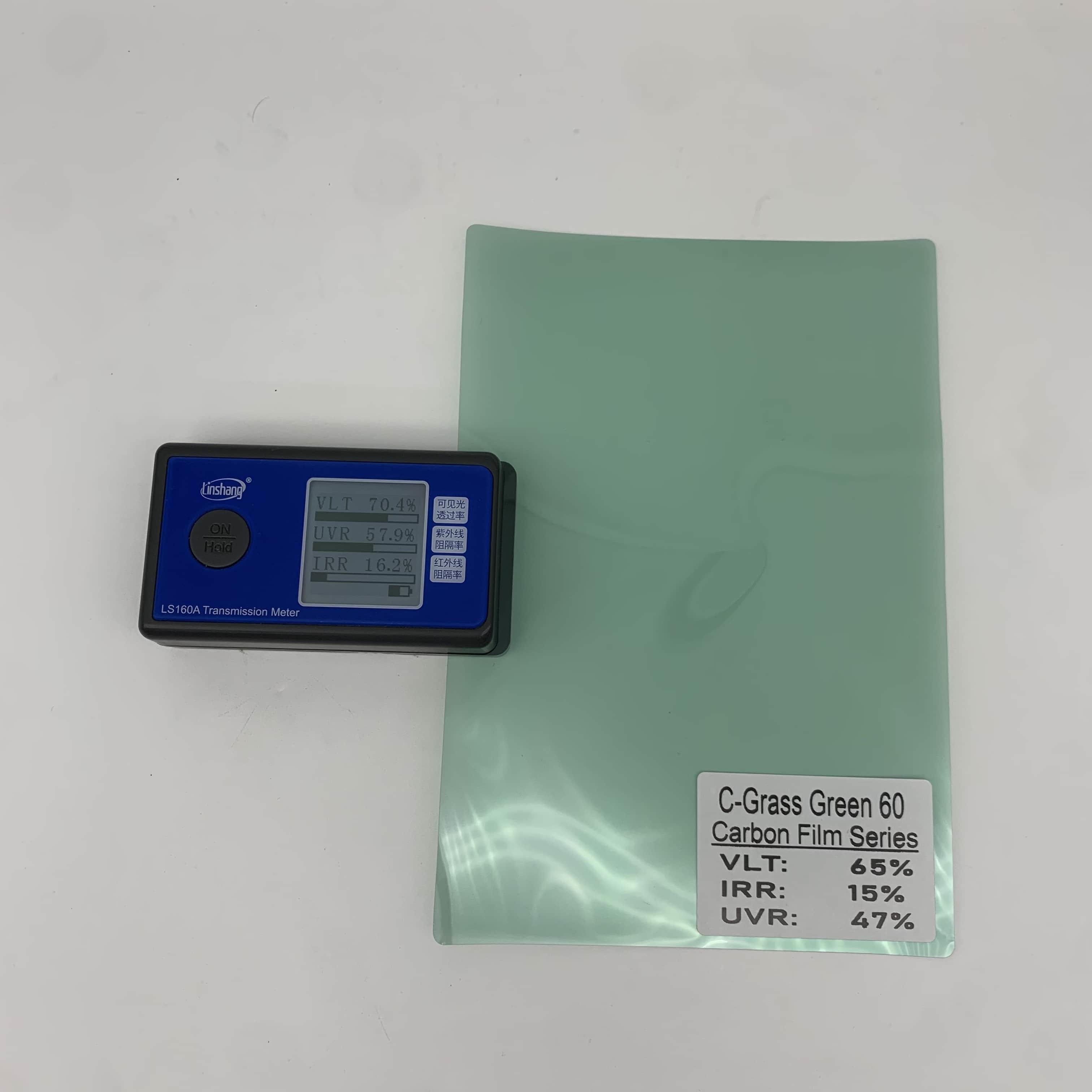 Premium energy-efficient carbon film with 98% UVR protection and high strength. Features grass green color with 60% VLT for optimal visibility and heat rejection.